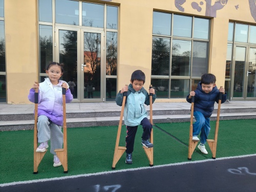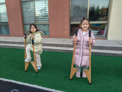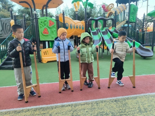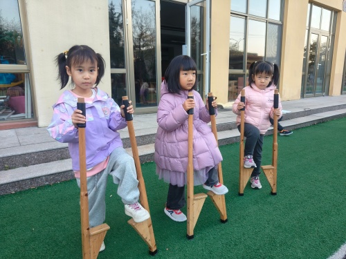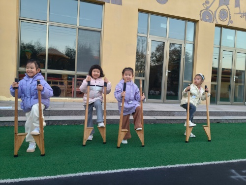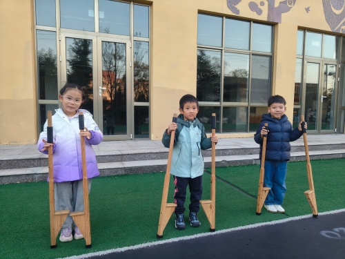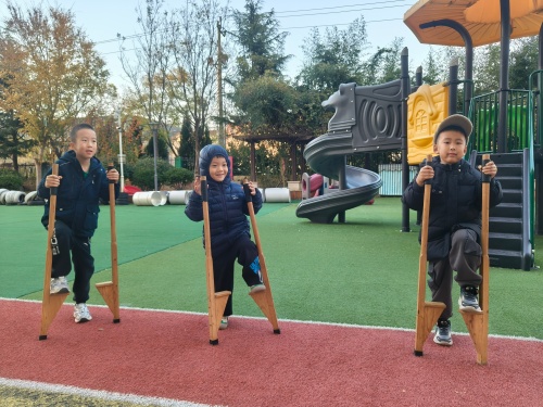 幼儿园里的踩高跷活动,是孩子们探索世界的奇妙旅程。