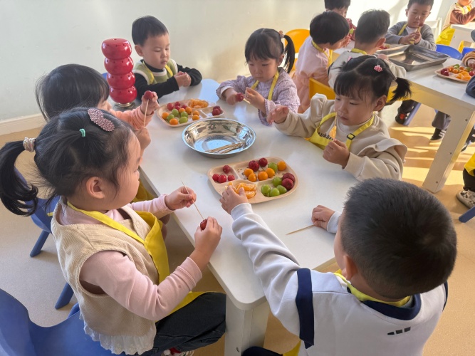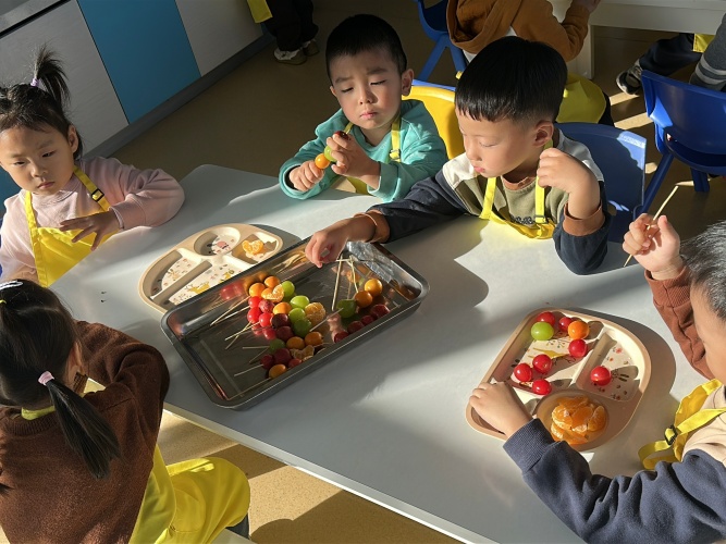 孩子们小手紧紧握着竹签,专注的神情让人感动。有的孩子选择了“彩虹搭配”,红黄相间;有的则坚持“全山