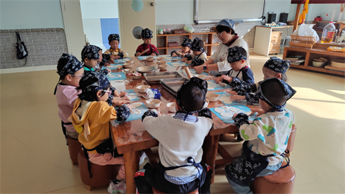 11月7日立冬时节,幼儿园面工坊里暖意融融、欢声笑语,一场充满传统文化趣味的“立冬吃饺子”实践活动正在这里上演。