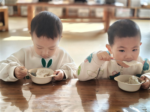 当热气腾腾的饺子出锅,孩子们捧着自己亲手包的饺子品尝着自己的劳动果实,脸上洋溢着自豪与满足的笑容。这次活动孩子们在动手实践中锻炼了协调能力,更在浓浓的节气氛围中,亲身感受并传承了中华传统文化的独特魅力。
