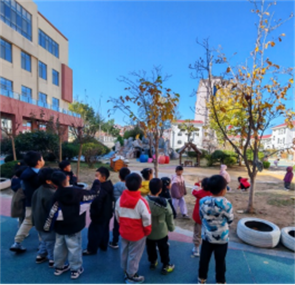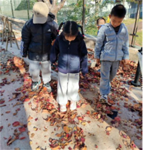 发现、捡拾、感受幼儿园的落叶、叶柄。