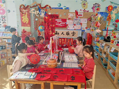 我们的小手贴贴画画,教室换上新年新衣裳。