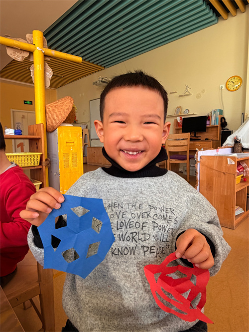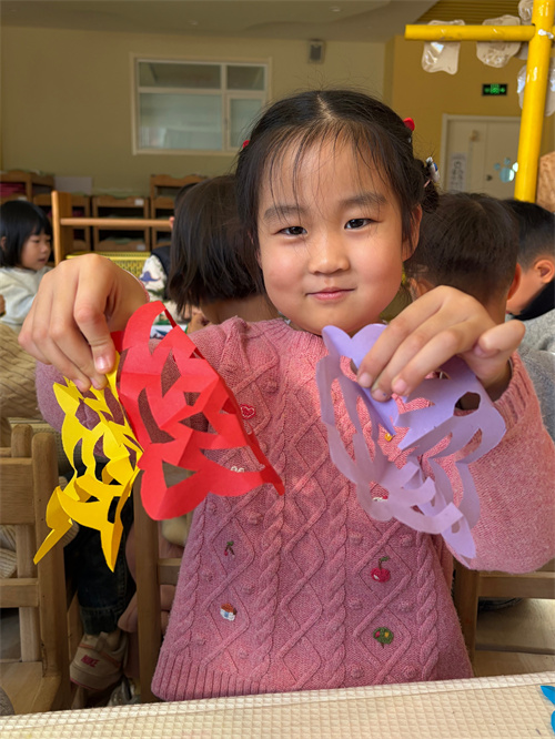 这些窗花或许不够精致,线条或许不够流畅,但每一幅都承载着孩子们的认真与创意,是他们第一次尝试剪窗花的珍贵纪念。这次活动不仅让孩子们体验了传统手工艺的乐趣,锻炼了手部精细动作,更让他们在探索中收获了自信与快乐。