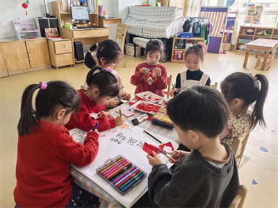 我们的小手贴贴画画,教室换上新年新衣裳。