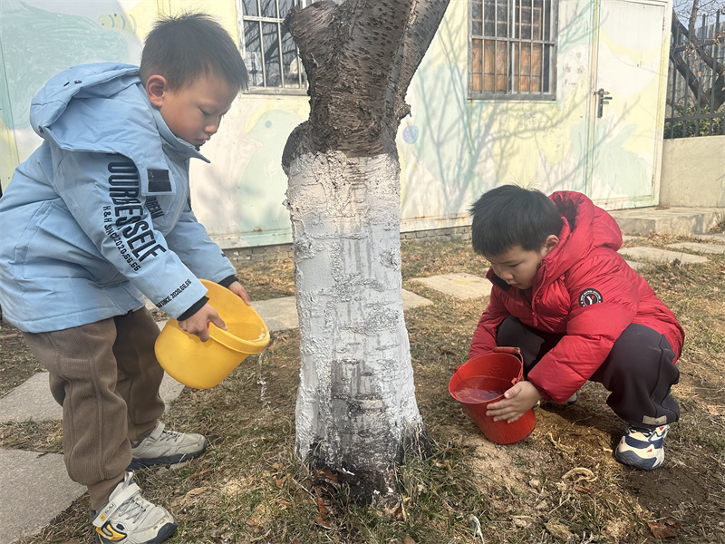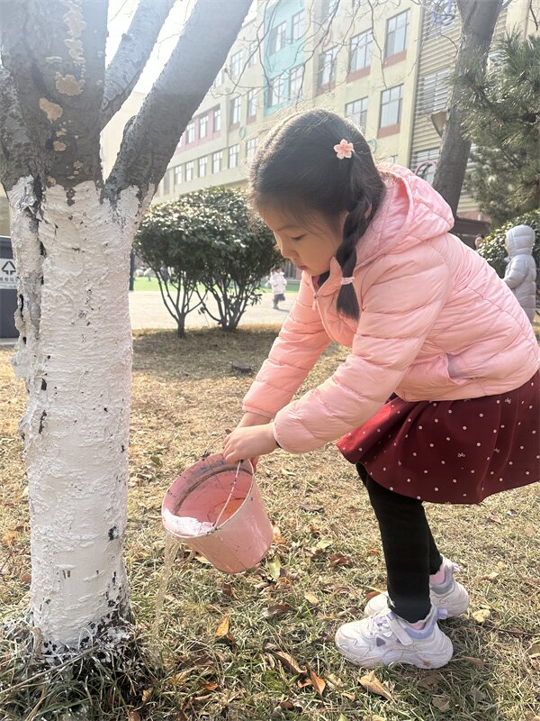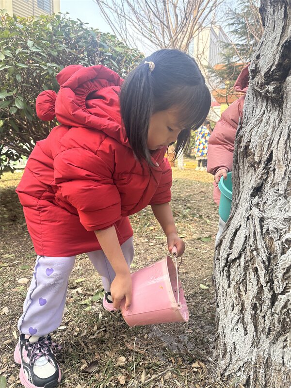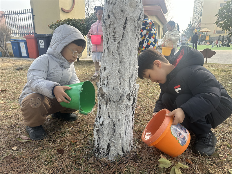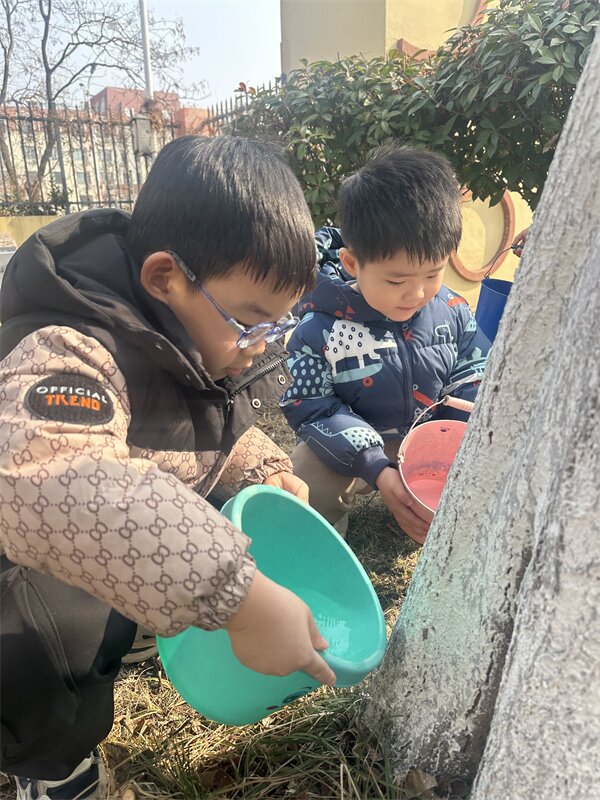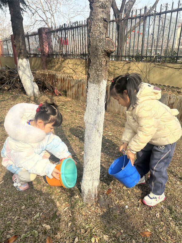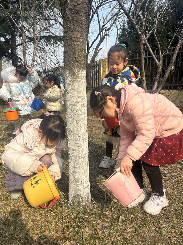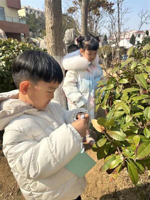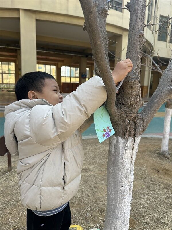 小铲子刨开湿润的泥土,小水桶舀起叮咚的清水,稚嫩的小手轻轻抚摸大树,让它稳稳扎根在春天里。每一次弯腰浇水,都是和新芽的悄悄话;每一笔在爱护牌上的涂鸦,都是对小树的承诺。“小松树快快长”“我和小树共成长”,一笔一画,藏着孩子们最纯真的期许。